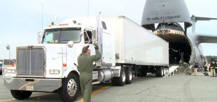 C-5 Galaxy ‘engole’ caminhão gigante com toda a facilidade