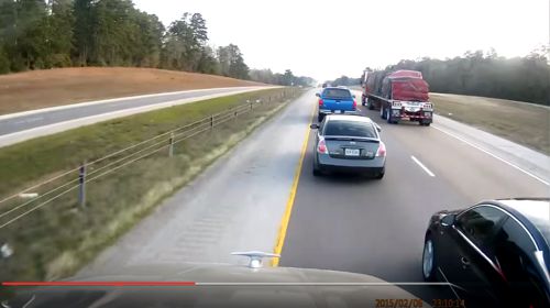 Ele fechou o caminho à condutora que tentava ultrapassar o outro caminhão. O carro ficou desfeito, mas… que estava errado? As velocidades não eram elevadas, os carros e caminhões não estavam assim tão proximos...