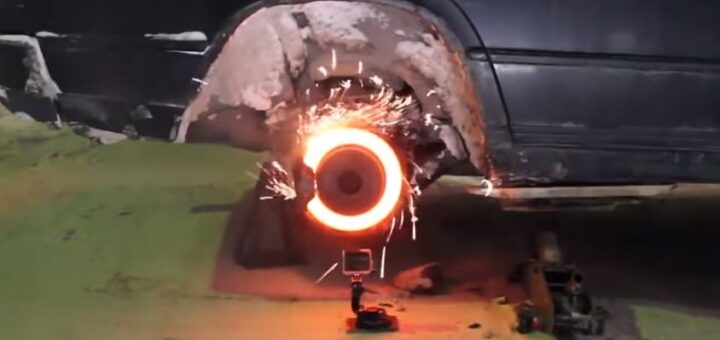 Não demorou muito para que os rotores começassem a aquecer e brilhar , mostrando o quanto de fricção existe quando você está a tentar parar o carro. Conforme o experiência continua, pode ver claramente os rotores atingindo uma temperatura insana, com faíscas a voar.