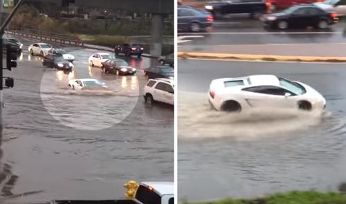 Este dono de um Lamborhini Gallardo é destemido, e deve pensar que tem um submarino… ele passou por um estrada com muita água! E quando dizemos que a estrada tinha água, é porque tinha...