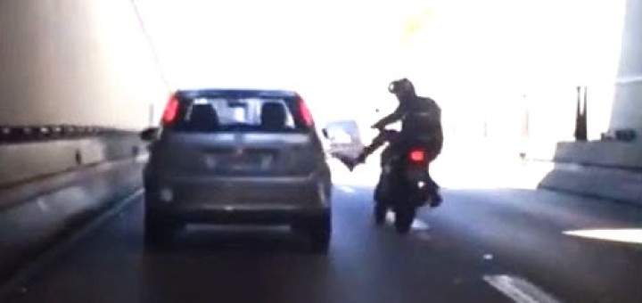 Não sabemos bem o que aconteceu, mas sabemos que teve Karma instantÂneo! O motociclista não deve conhecer bem as leis da fisica, sim… porque senão não teria feito estas lindas figuras! 🙂 é o...