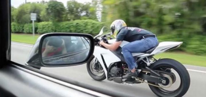 Um grupo de amigos estava a testar as alterações realizadas a um Dodge Challenger SRT Hellcat quando foi ultrapassado, a toda a velocidade, por uma mota.