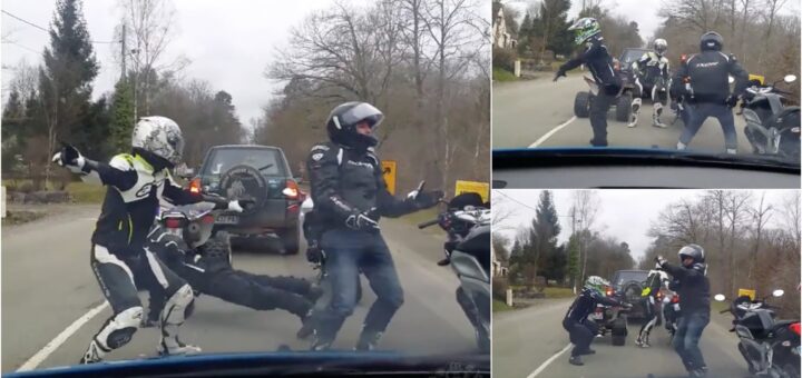 E agora, adicione ao cenário três motards bem dispostos que decidem brindá-lo com uma dança…