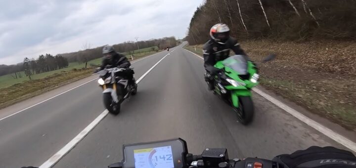 Um grupo de amigos estava a testar as alterações realizadas a um Dodge Challenger SRT Hellcat quando foi ultrapassado, a toda a velocidade, por uma mota.