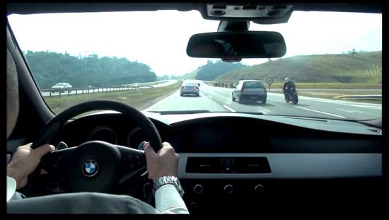O condutor do BMW M5 não resistiu à passagem da Honda, e carregou a fundo na Auto Estrada! (sim, não foi na AutoBahn)