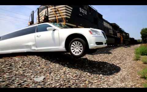 A limusina ficou parada no meio da linha do Comboio, e a colisão foi inevitável! Felizmente ninguém ficou ferido. É incrível como a limusina que tem como base na sua estrutura o Chrysler 300, aguentou...