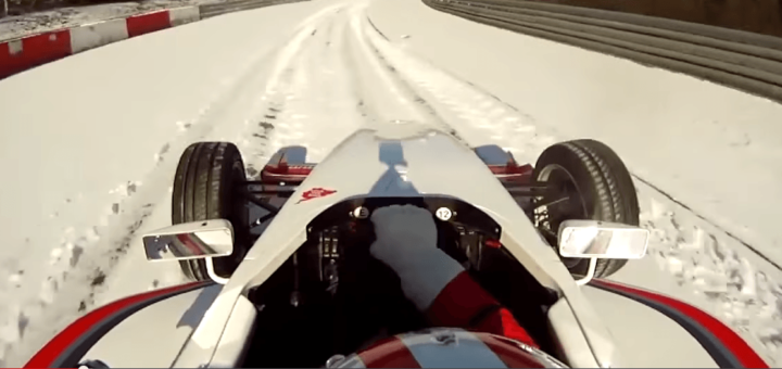Temperatura negativa, neve aos montes, a pista de Nürburgring na Alemanha conhecida pelas melhores e piores razões e um carro de Formula 1 a fazer uma volta como se fosse um rei. Não se acreditam...