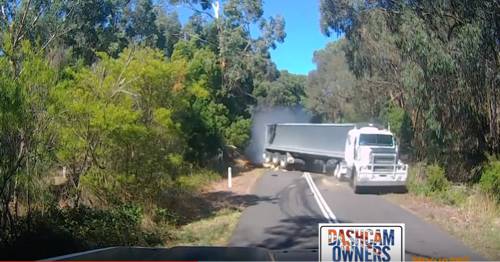 Truck loses control and can not stop in time before hit the tree on the ground