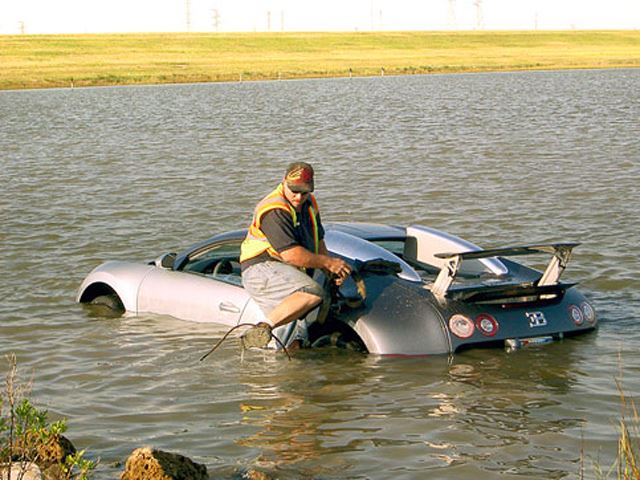Em 2011 nos Texas (EUA) houve um artista que ao volante do seu belo Bugatti Veyron, “teve” um acidente aparatoso e enfiou o carro num lago gigante. Sim… Um Bugatti Veyron dentro de um lago!!! Até doí dizer isto!
